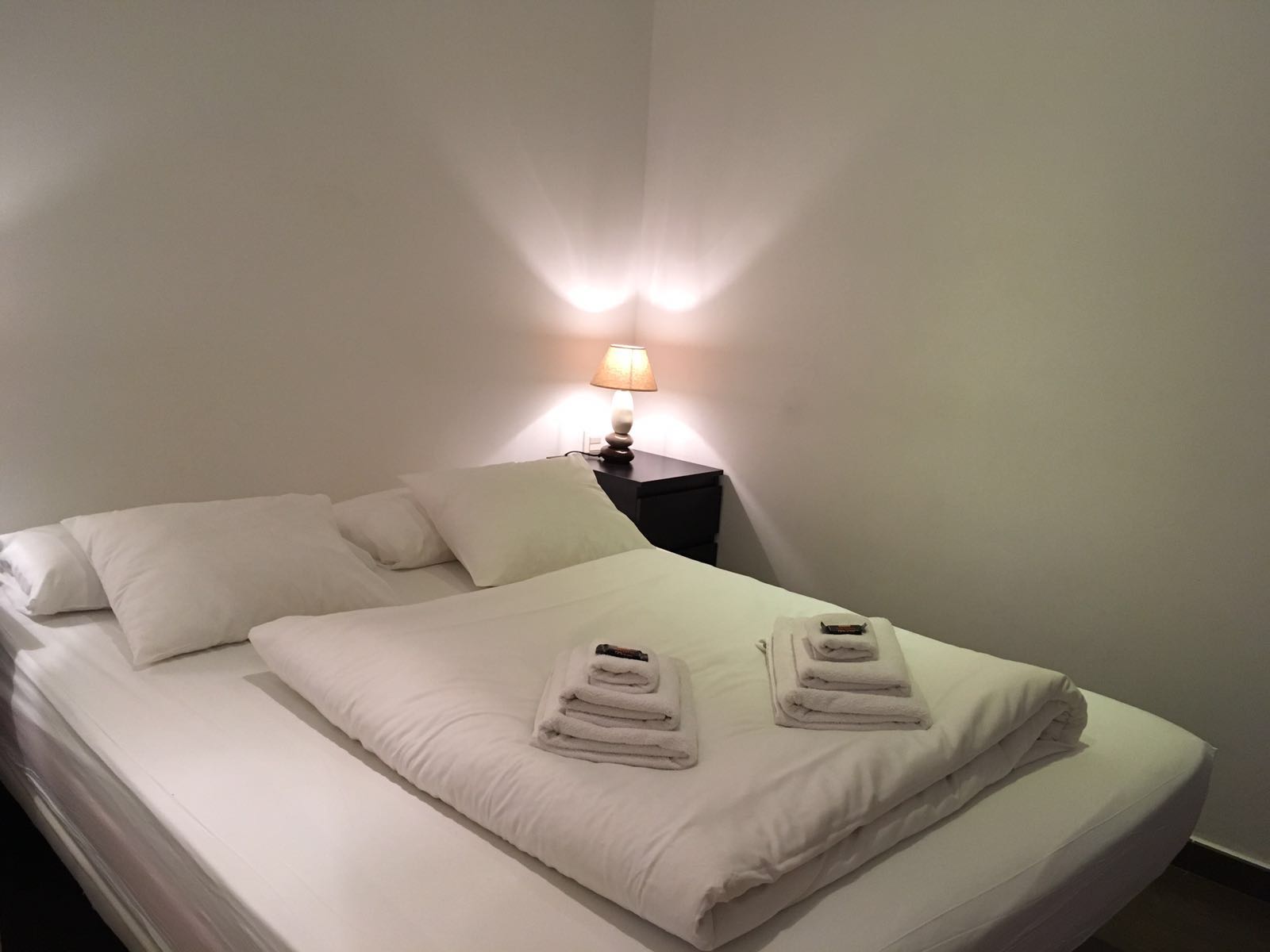 The apartment has 1 double bedroom and 1 bedroom with 2 single beds.